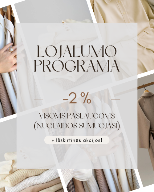 Mūsų kainos – reikšmingai mažesnės nei didžiuosiuose valyklų tinkluose. Taikome sezonines, asmenines, lojalumo ir kiekio nuolaidas.